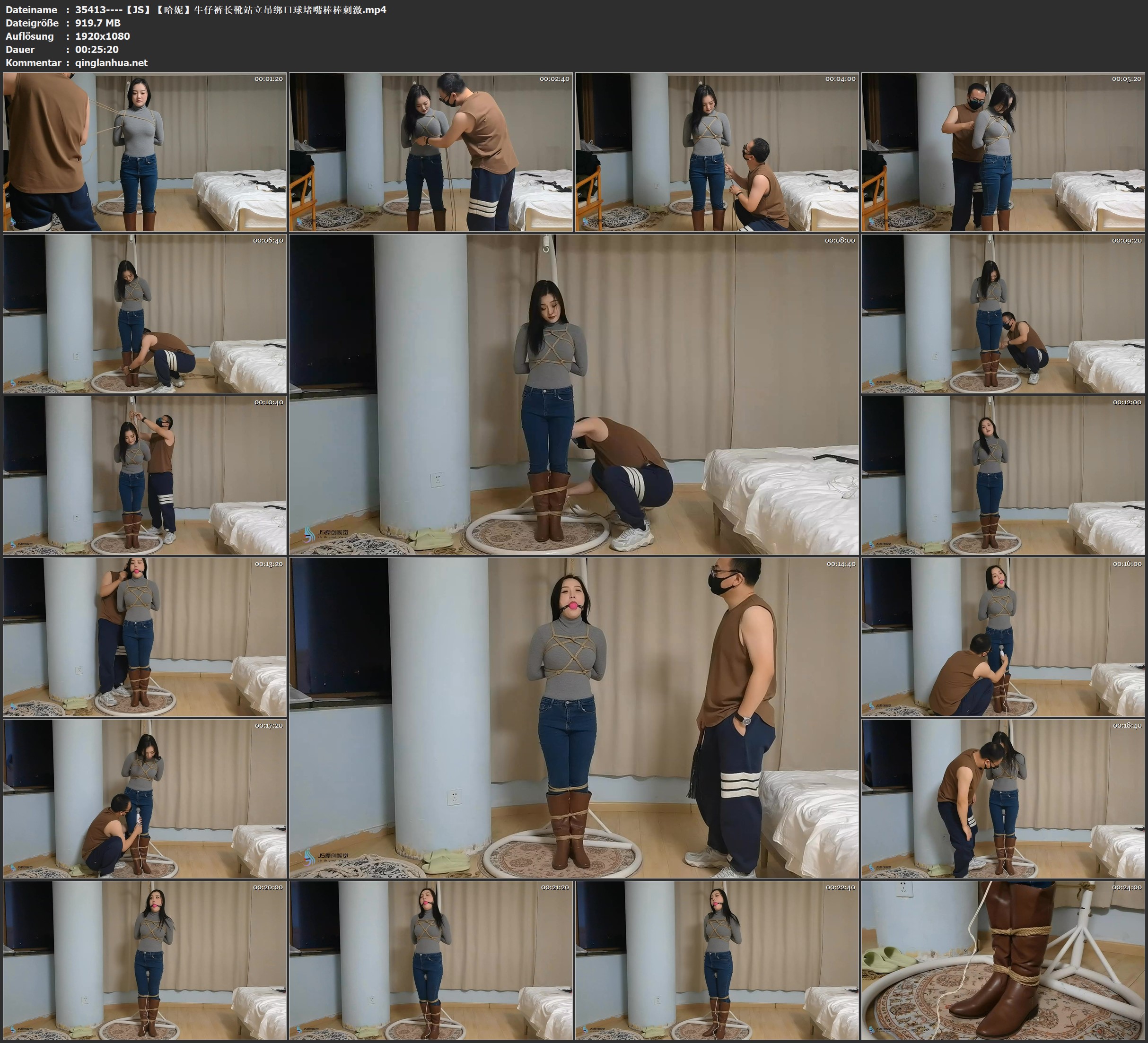 【JS】【哈妮】牛仔裤长靴站立吊绑/口球堵嘴/棒棒刺激