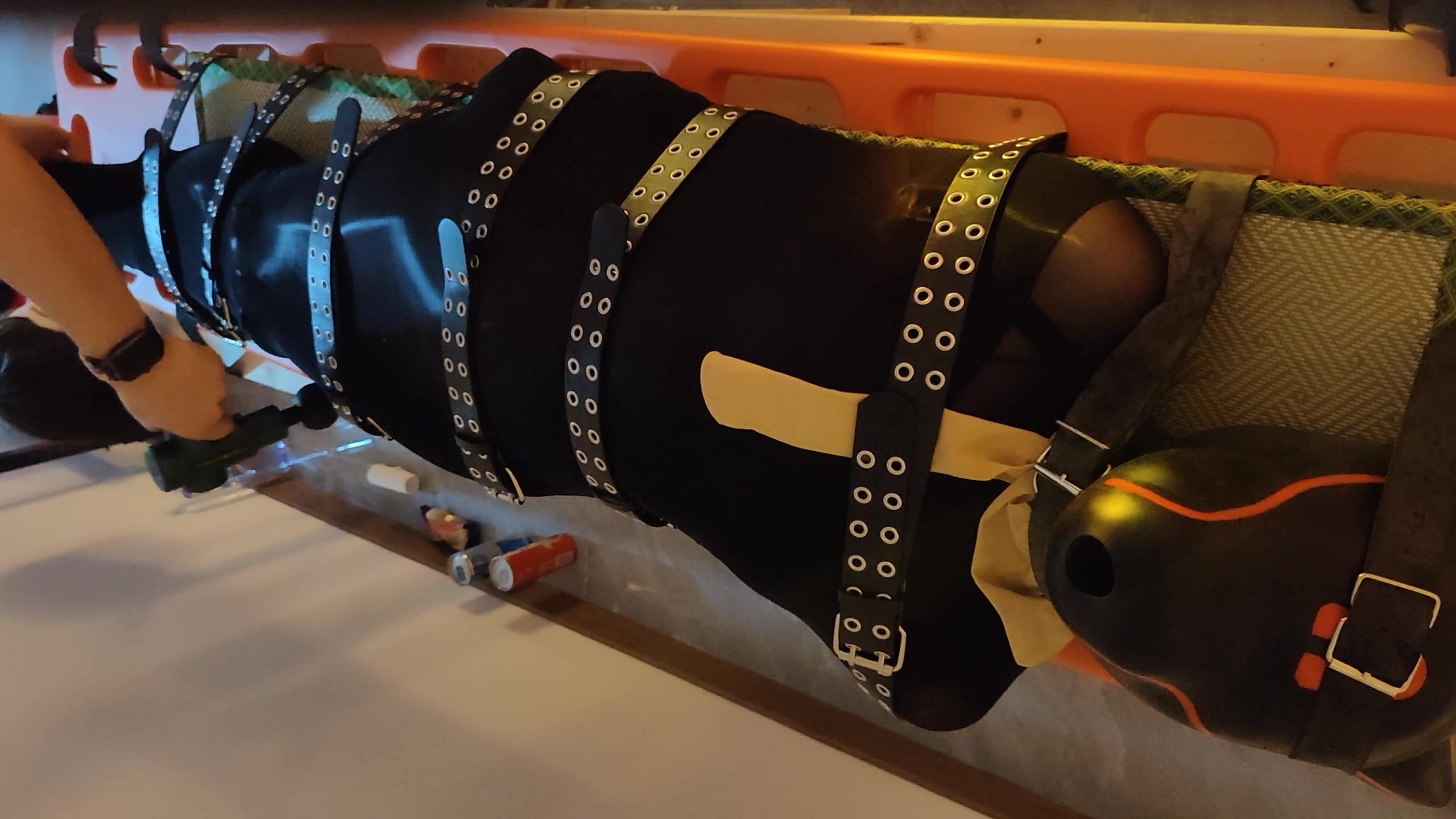 舞蹈生模特小迷,又被重度拘束起来咯,被一层层包裹成木乃伊:一层全包连体丝,一层单手套和硅胶口塞头套,一层丝袜木乃伊,一层皮革固定在板子上。身材巨好的小迷被捆成了粽子,柔韧性再好,也只能上下扭动,无法逃避,被迫强制高了两次。