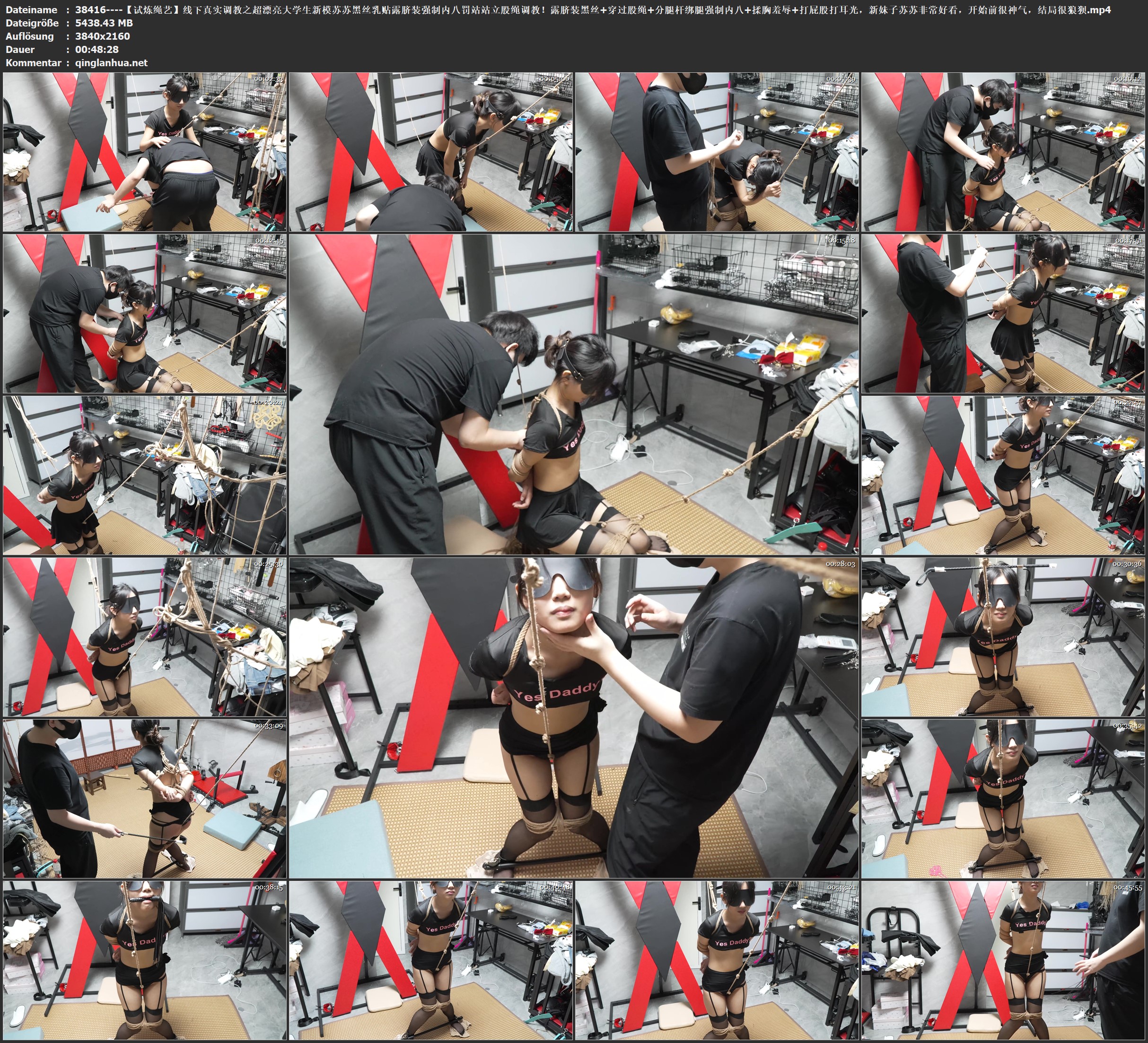 【试炼绳艺】线下真实调教之超漂亮大学生新模苏苏黑丝乳贴露脐装强制内八罚站站立股绳调教!露脐装/黑丝+穿过股绳+分腿杆/绑腿强制内八+揉胸羞辱+打屁股/打耳光,新妹子苏苏非常好看...