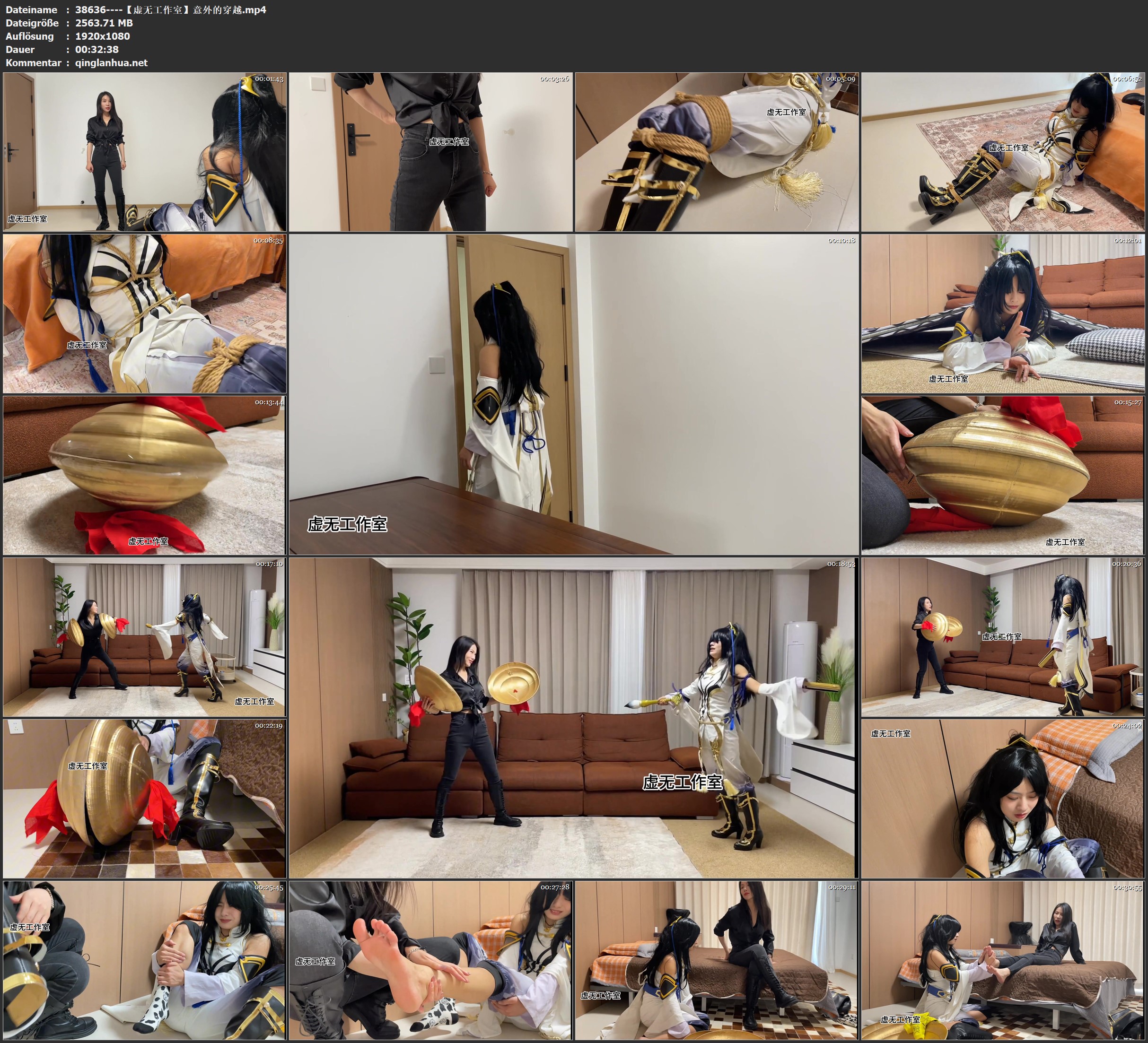 黑衣女是个拥有穿越能力的人,她穿梭在各个时空,偷走了各种宝物,并且纳为己用,其中就包括恍金绳和金钵。一次意外的穿越让她穿越到了上官婉儿的府邸,并且顶上了婉儿的武器,两人便开打,婉儿明显不是对手,先是被恍金绳捆住,虽然是挣脱了,但是这是在反派的故意安排下才让她逃脱的,随后反派使用重压力,将婉儿重重的压倒在了地上,不服输的婉儿又与之决斗,奈何被吸入金钵里,脚快要化了。大意的黑衣女以为自己赢了,便打开了金钵,发现婉儿只是奄奄一息。随后便用金钵释放闪电电击婉儿,又用金钵夹住了婉儿的脚,疼痛万分的婉儿最后屈服,被黑衣女脱靴脱袜,做了自己的奴隶,让婉儿给自己脱靴揉脚,可怜的婉儿服从之后还是没有被放过,被捆起来之后又被装进金钵里