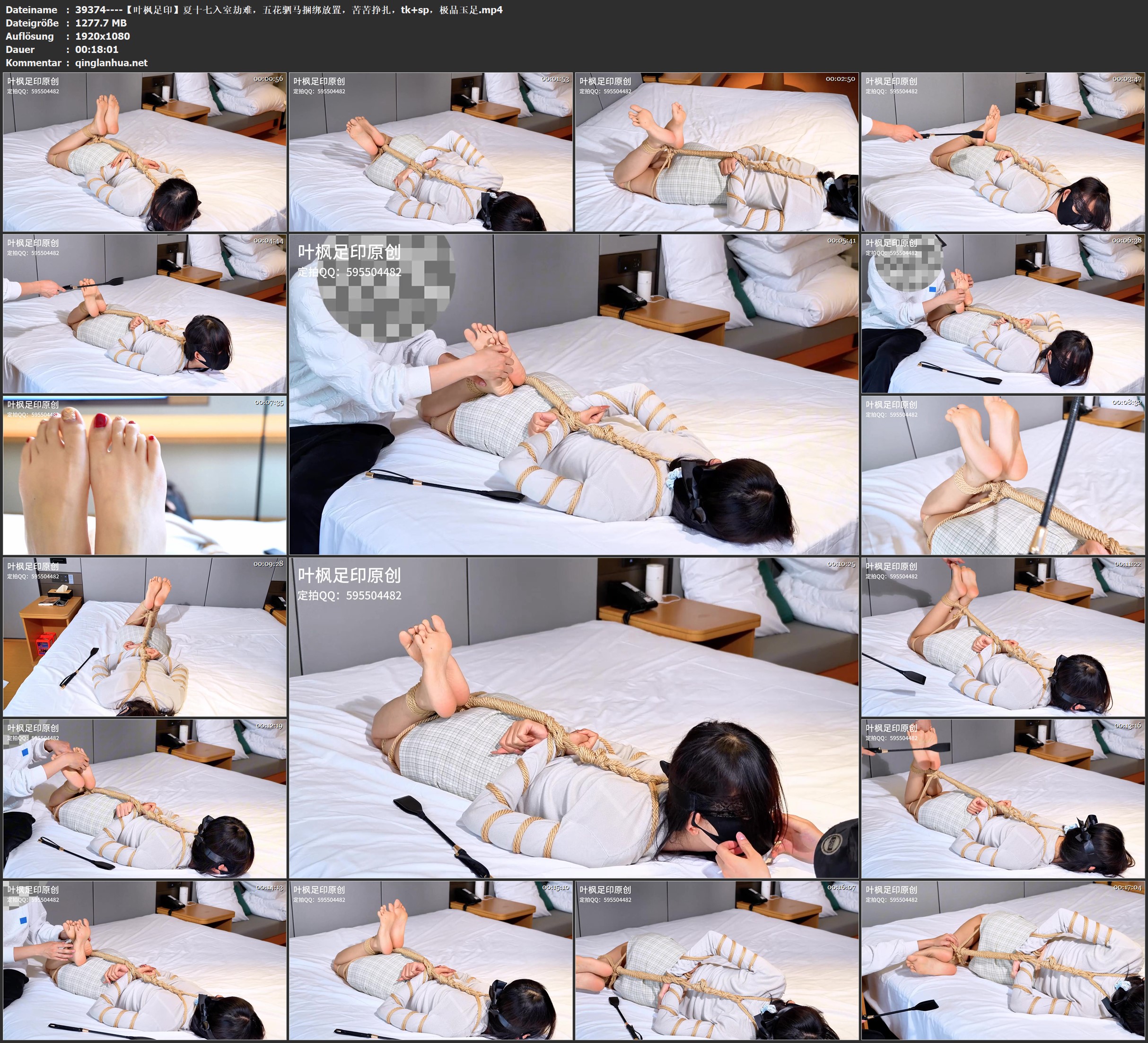【叶枫足印】夏十七入室劫难,五花驷马捆绑放置,苦苦挣扎,tk+sp,极品玉足