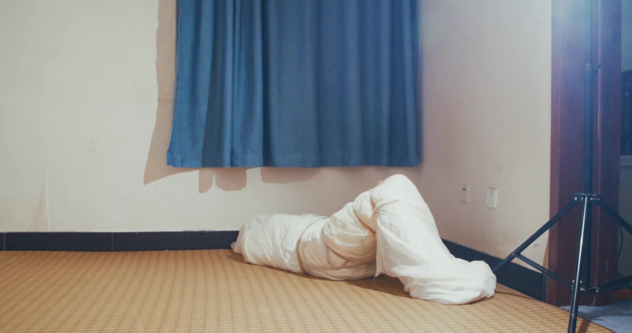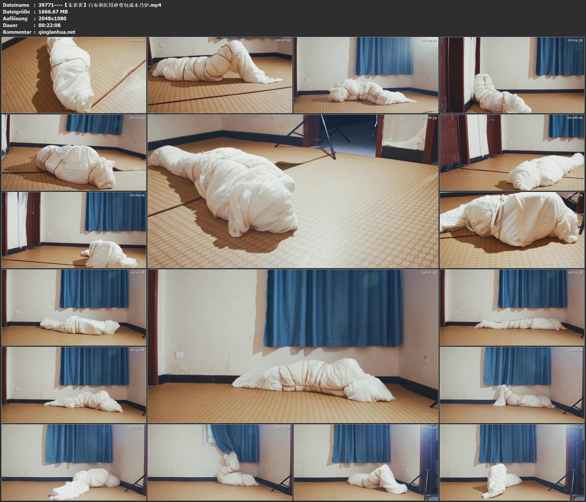 用白色床单医用砂带包成木乃伊包裹加上棉绳捆绑尽量让包裹更加美观,在里面难受得挣扎无法挣脱