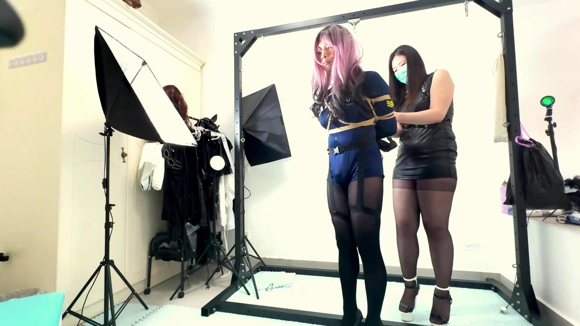 【冷月绳艺】《伪娘线下体验纪实》 从东北来的伪娘希音来工作室体验,希音先是被驷马吊榨汁,射的到处都是,整个内裤都湿透了,然后再换成单腿吊缚继续榨,嘴巴被大号马具口塞死死...