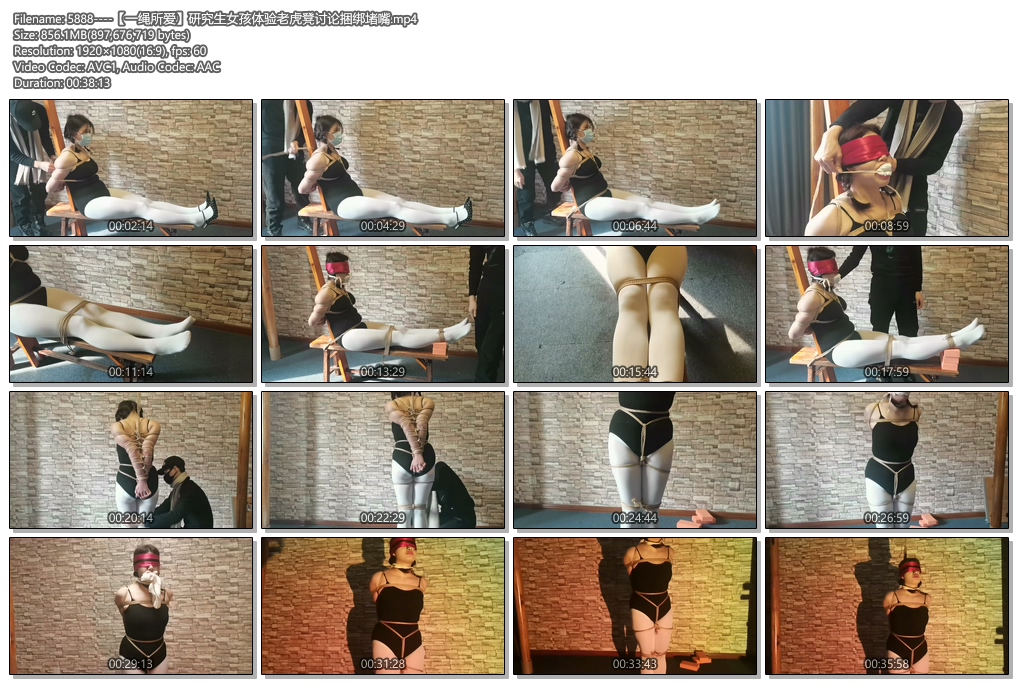 研究生女孩体验老虎凳,欧式直臂捆绑放置等等,最后一起讨论捆绑和堵嘴的感受。