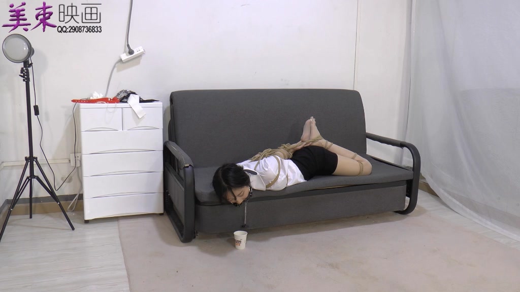 玩腻了的罪犯重新换了一种玩法,这一次他用不同的道具来堵住小A的嘴,接着再将她捆成驷马,在她旁边放了杯子。